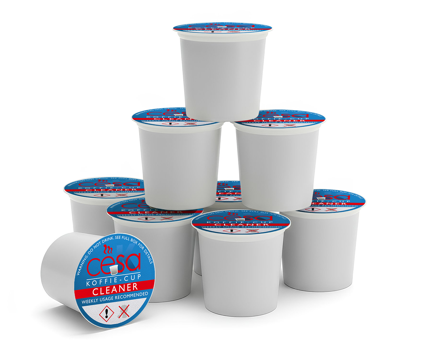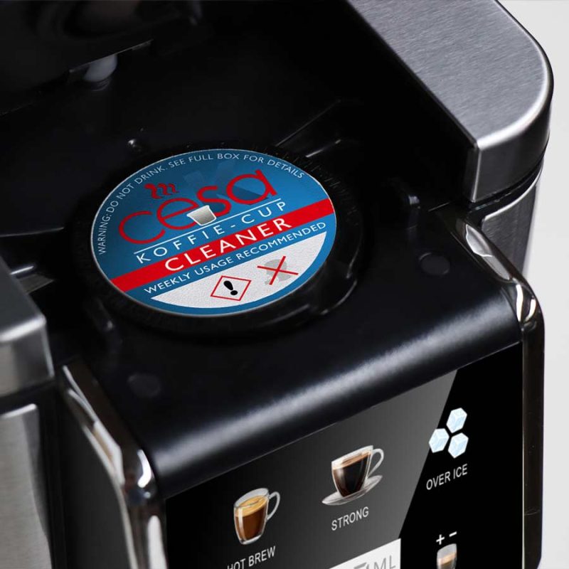 Specially formulated CESA Koffie & Ubuntu Cleaning Cups remove oily residue and coffee buildup from the brew chamber and exit needle.